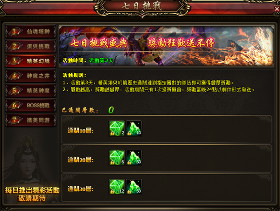 活动主题:七日挑战盛典 奖励狂欢送不停