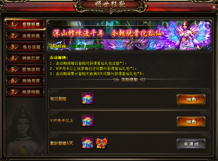 3、新增“媚世狂欢”活动,神秘狐仙时装助您羽化登仙!详情请见 >>>媚世狂欢简介<<<